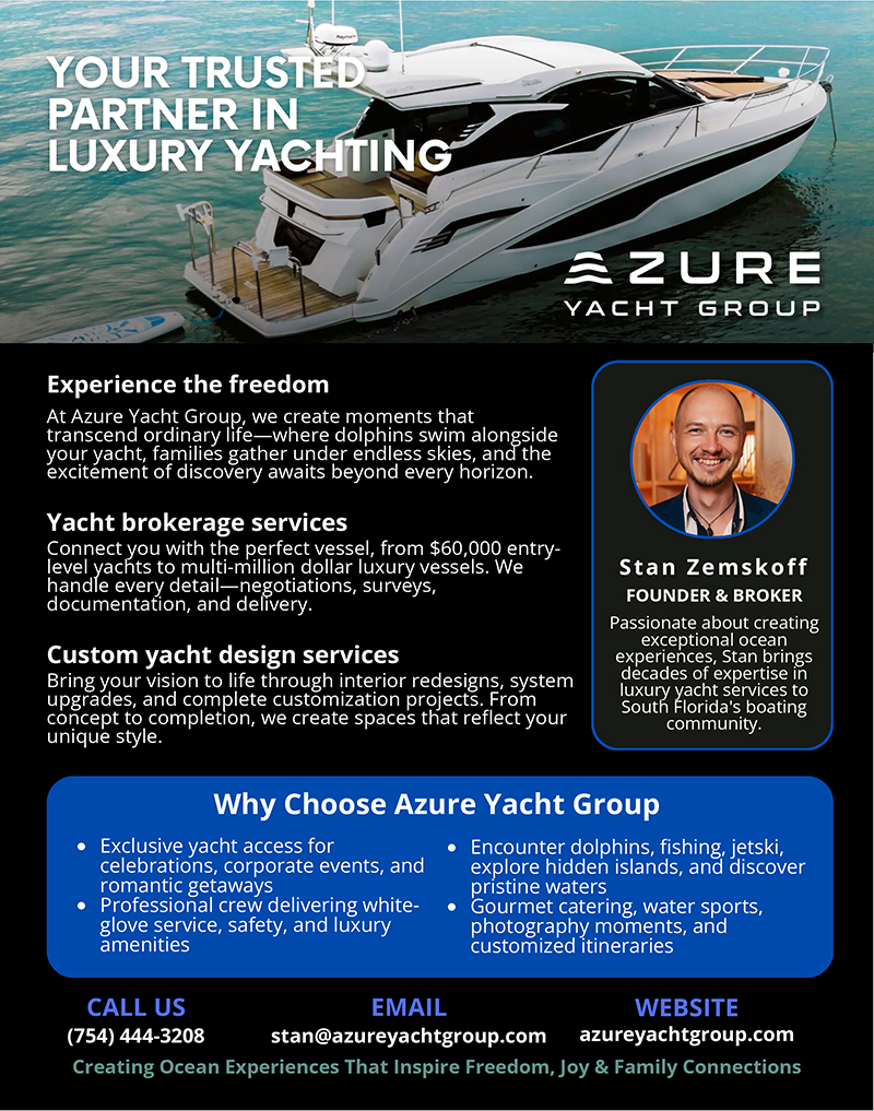 Contact your yacht broker Stan Zemskoff for luxury yacht services – brokerage, charters, experiences, design. We’ll get you a vessel of your choice for any occasion to create an unforgettable experience for your life. Professions crew, gourmet catering, water activities, photo session – we have it all onboard.