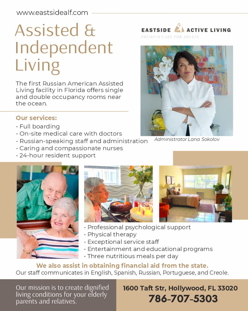 Nursing Home for seniors in Hollywood, Florida. Eastside Active Living’s primary focus is to make residents feel at home by providing physical, social, and mental engagement in their community. We speak Russian.