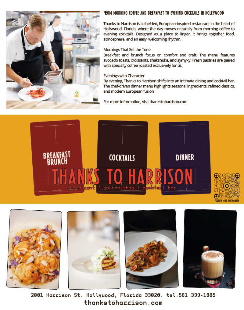 Thanks to Harrison is a chef-led, European-inspired restaurant in the heart of Hollywood, FL, serving the best breakfast, brunch, and dinner: