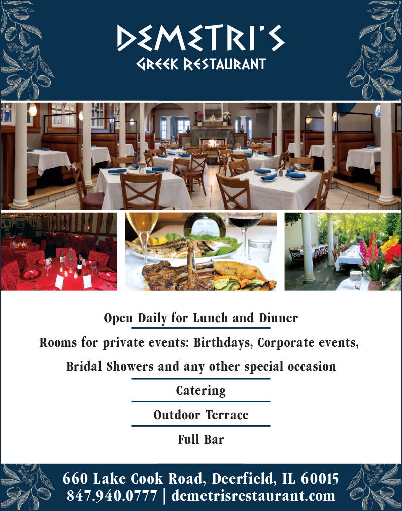 Demetri’s offers authentic Greek cuisine including classic spreads, gyros, chops, seafood, baklava and selection of Greek wine. Come to dine in, celebrate your special occasion, or order take-out. Open every day for lunch and dinner. We have a private party room and outdoor terrace!